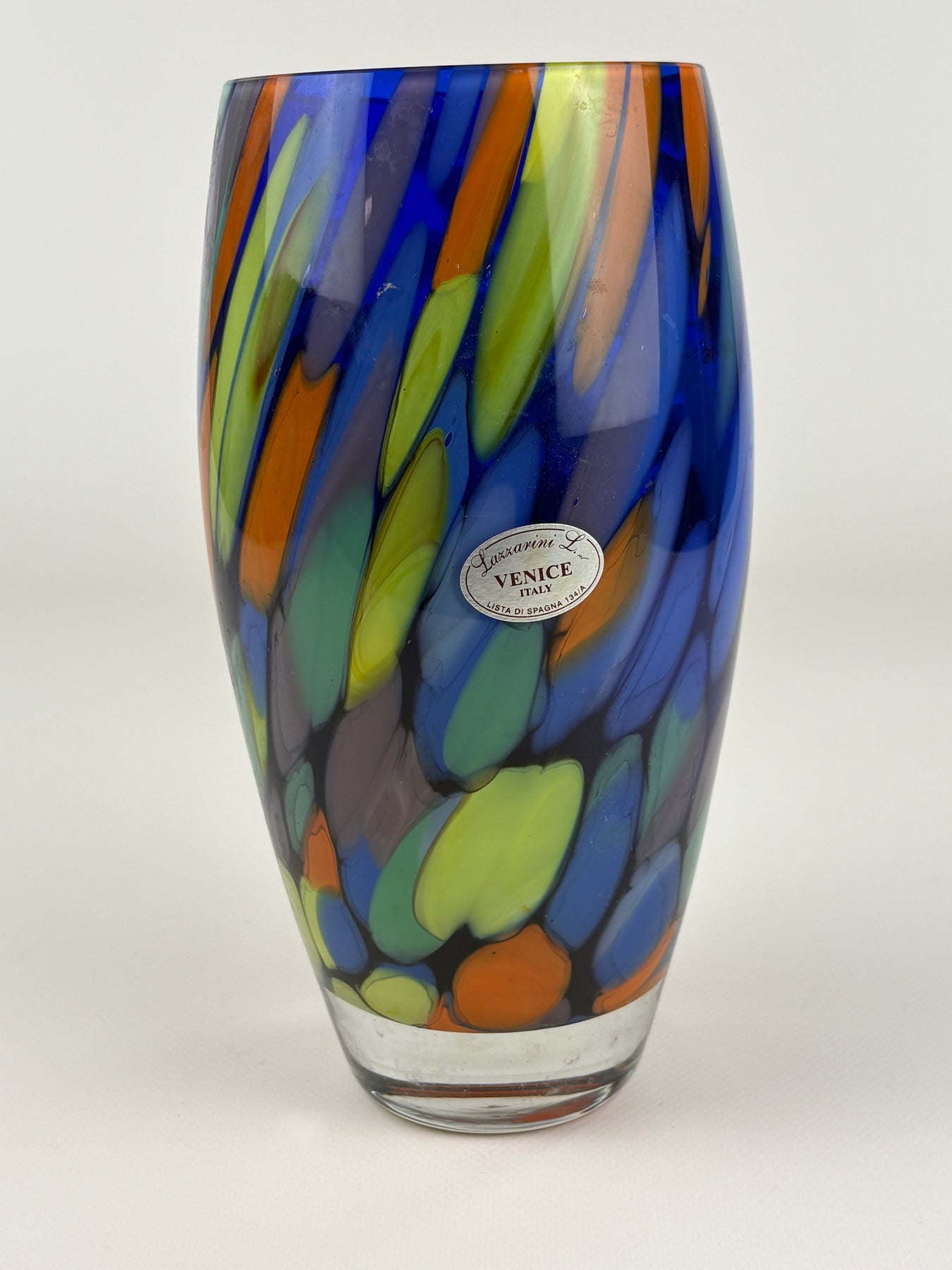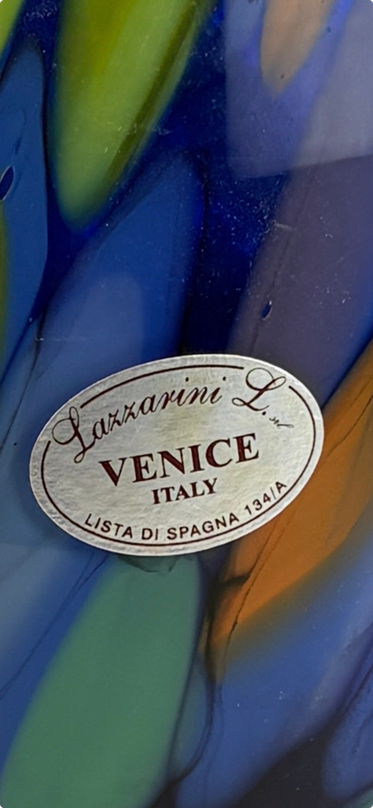 Ein originales Lazzarini Venice Italy Etikett ist noch vorhanden und weist auf den Verkauf in einem venezianischen Glasgeschäft hin.